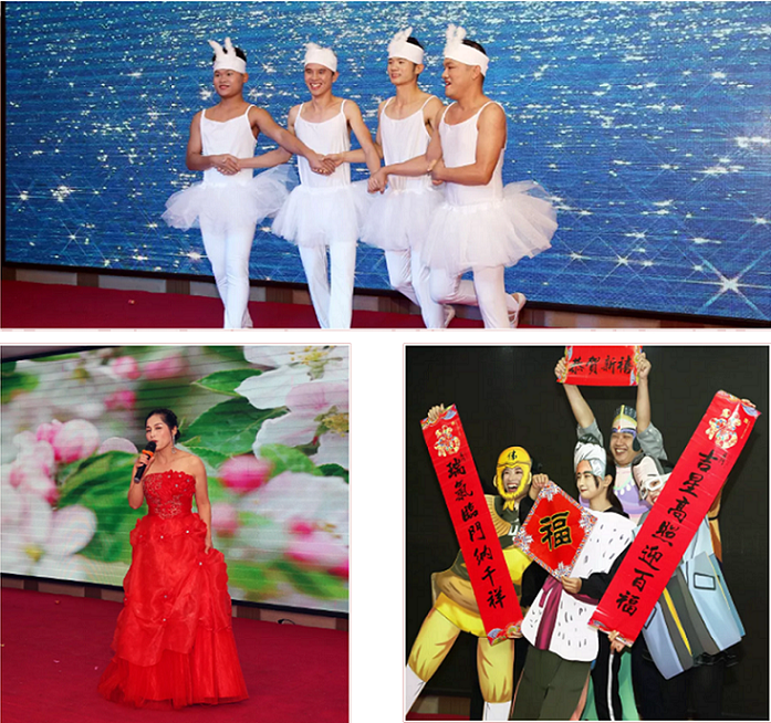 年會(huì)現(xiàn)場,其樂融融,員工們各展所長,紛紛呈現(xiàn)出精彩的表演,詼諧勵(lì)志的四小天鵝、惟妙惟肖的大咖模仿秀、溫暖深情的獨(dú)唱、美妙動(dòng)聽的吉他彈奏、動(dòng)感十足的舞蹈、祝福滿滿的手語舞、幽默搞笑的三句半、創(chuàng)意改編合唱等,通過節(jié)目紛紛表達(dá)出對(duì)同事、公司的樸實(shí)情感及對(duì)美好未來的祝福。